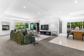 The main living area flows off the kitchen and opens out to the outdoor living comprised of a sheltered barbecue area overlooking a beautiful mature garden complete with a water feature, expansive decking and professional landscaping. The main living also has a roomy study nook hidden away.